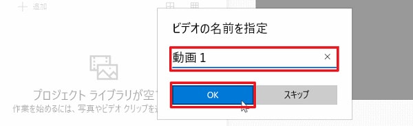 「フォト」を起動して、「さらに表示」をクリックして「ビデオエディター」をクリックすれば、「ビデオエディター」が表示されます。「新しいビデオ」→「新しいプロジェクト」の順にクリックし、ビデオの名前を指定してから、動画をクリックして「フォト」に追加します。